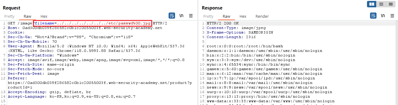 이를 이용하여 💡널 바이트로 jpg 파일 확장자를 우회하고 /etc/passwd 파일을 불러오면 된다.